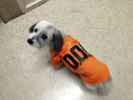 Bo, Sunny and Me at the start of ‘The Puppy Bowl’…I think one of them flubbed the National Anthem.