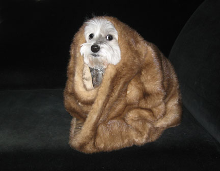 Look what the cat dragged in…tried on the mink schmatta and looked like my bubbe. I’ll stick with my hair coat thank you very much.